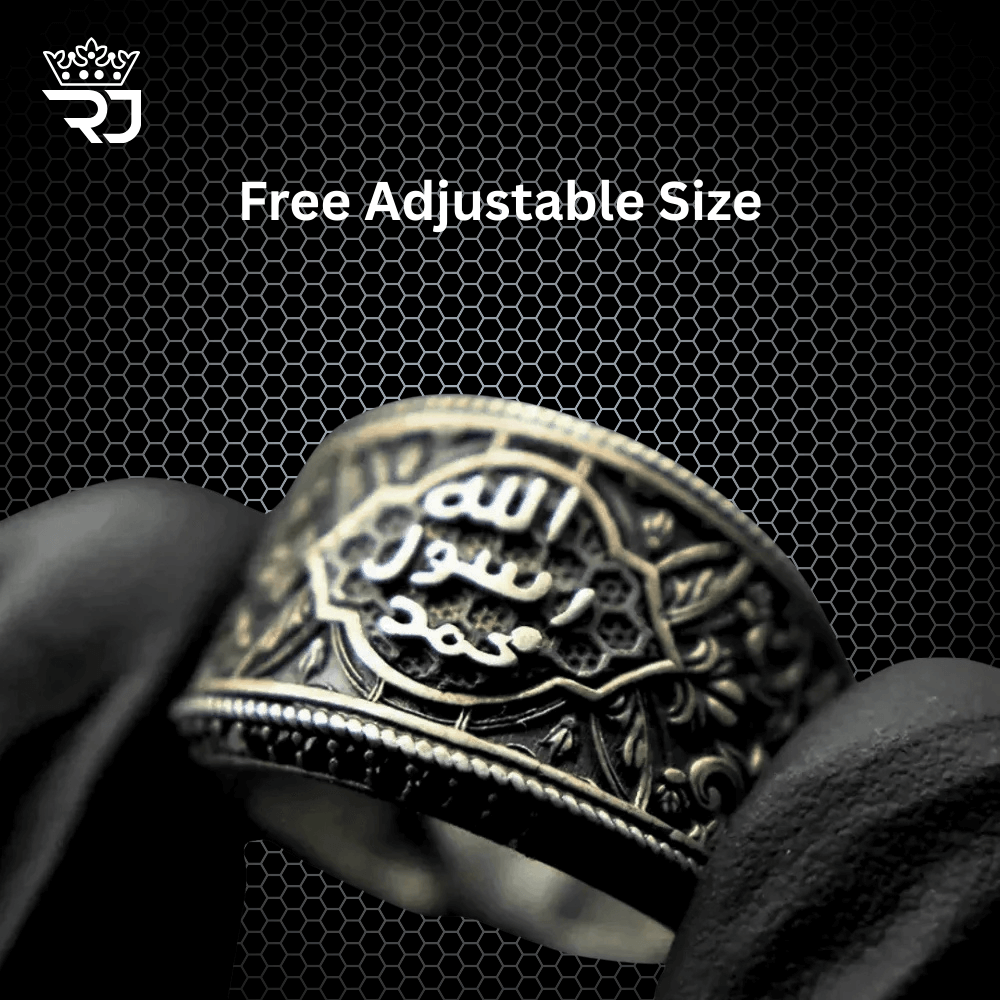 Inspired by antique Turkish artistry, the ring features intricate detailing that speaks to centuries of craftsmanship and spiritual symbolism. Its royal finish and classic weight make it a distinguished choice for those who wear their beliefs with pride.